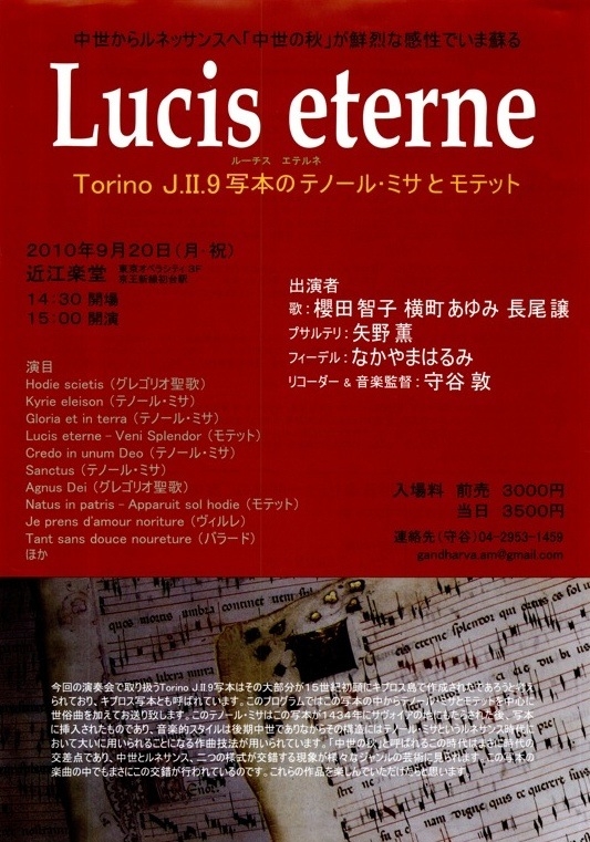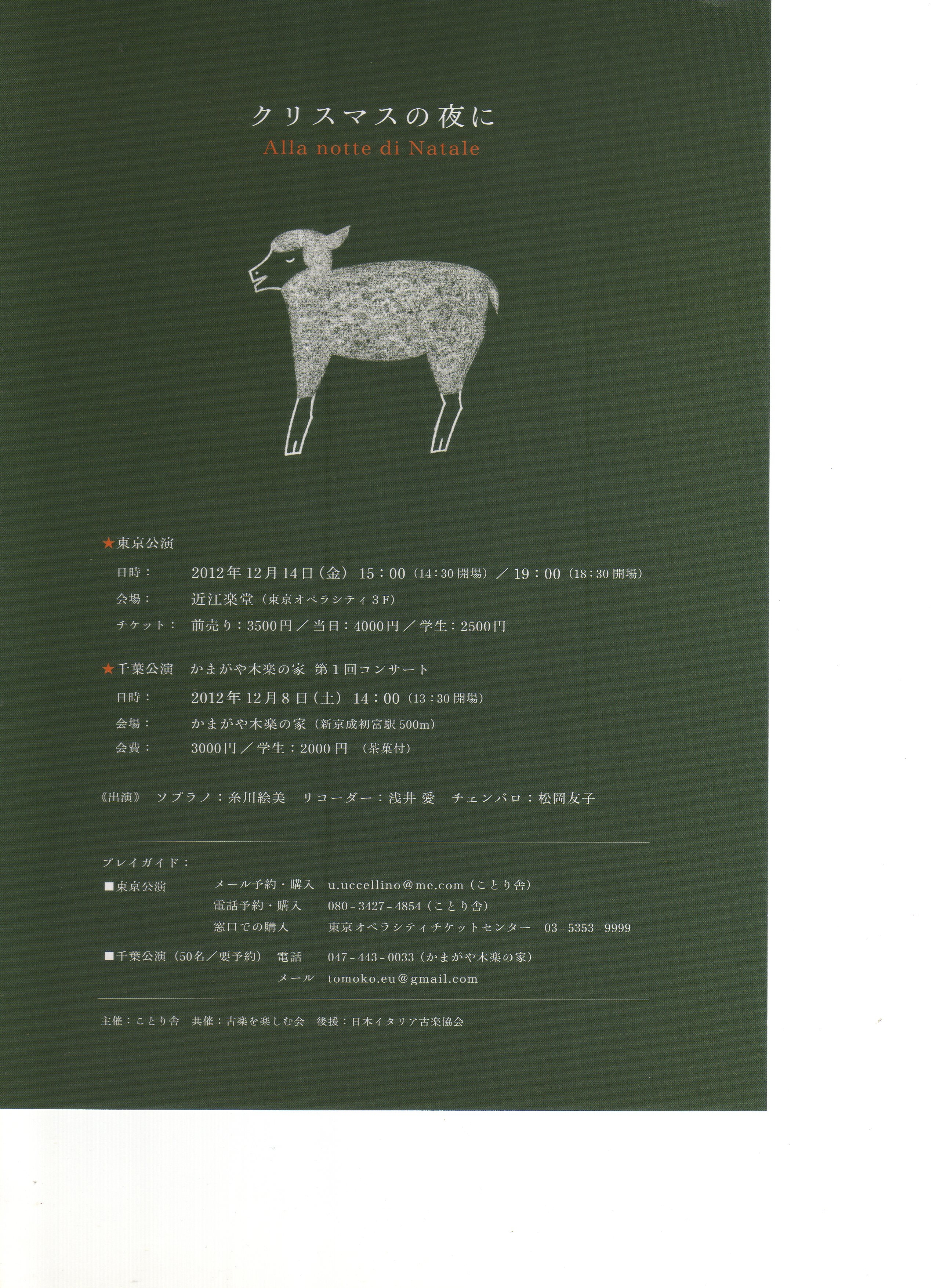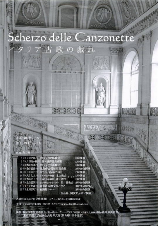 出演:木島千夏 ソプラノ 長尾譲 テノール 寺村朋子 チェンバロ