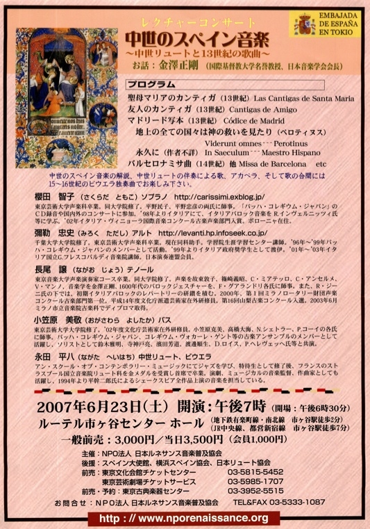 出演者 :長尾譲(テノール)大石祥之(チェンバロ)