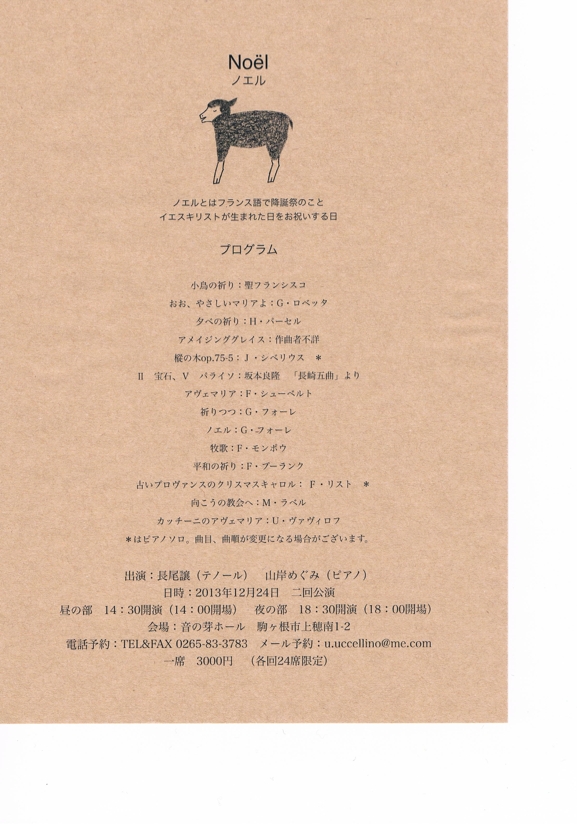 出演 テノール:長尾譲 ピアノ:三澤フローリオ望